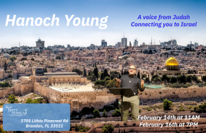 Hanoch Young will be visiting us from Israel. Come and hear an update on Israel, and the Temple Mount.