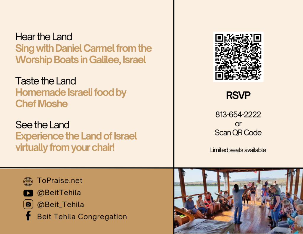 For tickets call 813-654-2222 or Israel Virtual Tour Tickets